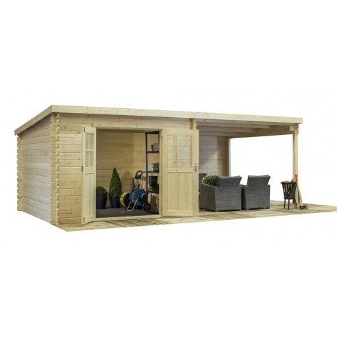 Abri de jardin Elody 17 m² avec auvent en bois massif 28 mm