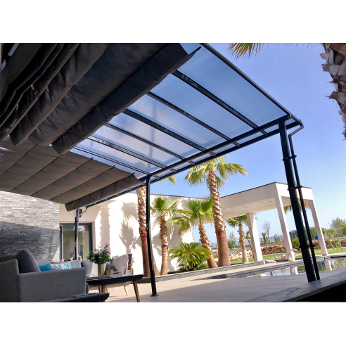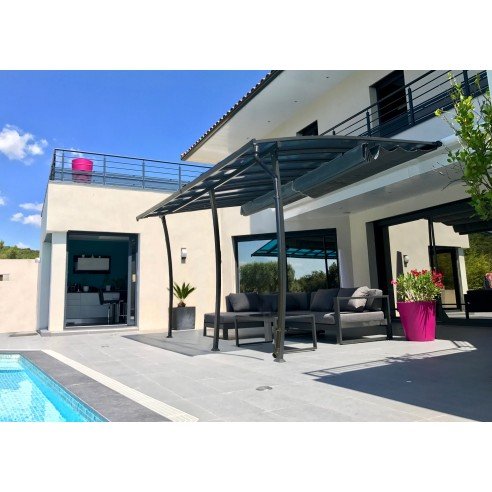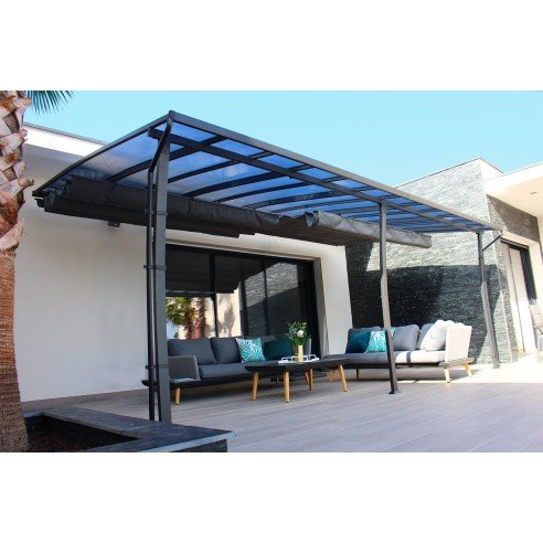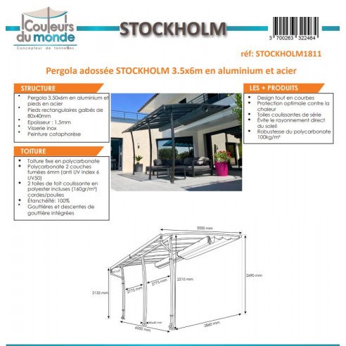 COULEURS DU MONDE – Pergola adossée Stockholm 3.5 x 6 m – Polycarbonate, acier, aluminium