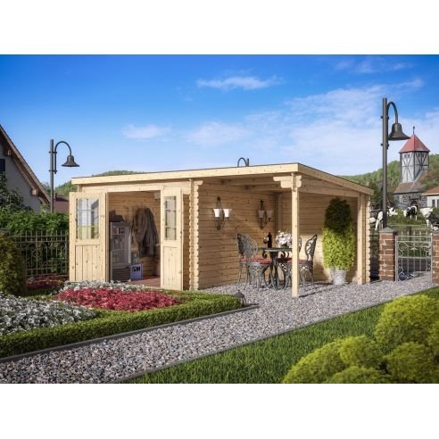 EDEN PARTENAIRE JARDIN Abri de jardin Coquelicot M avec auvent en bois naturel sans plancher 300 x 596 cm
