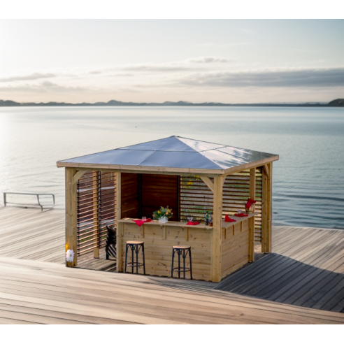 FORESTA – Pool House Blueterm bois THT 12.32 m² + 2 Vantelles + 2 parois comptoir