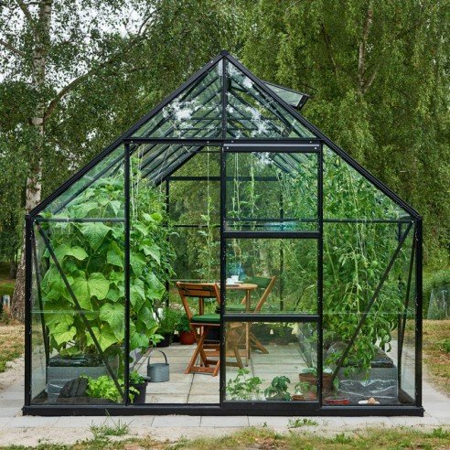 HALLS – Serre de jardin Universal 9.9 m² en verre 3 mm – Noir