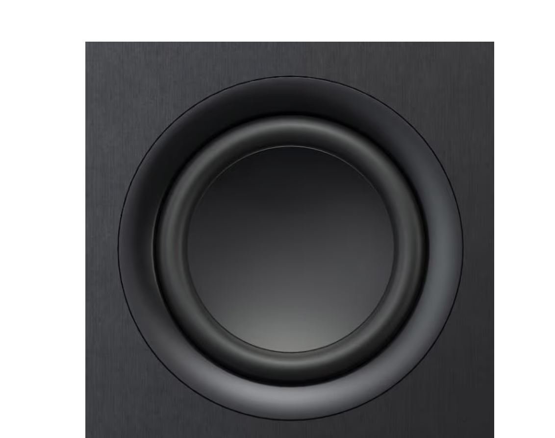 1x haut-parleur de grave de 20 cm et deux passifs de même diamètre en aluminium