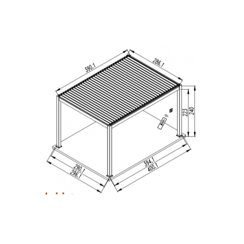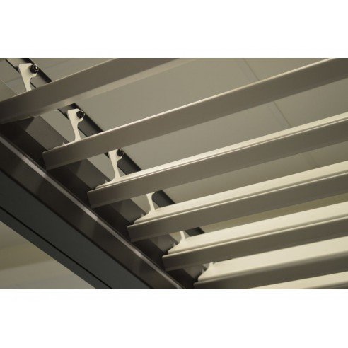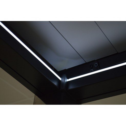 Tonnelleu00a0bioclimatique motorisu00e9e avec en plus un u00e9clairage sur un des poteaux !