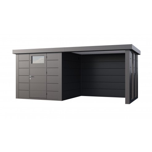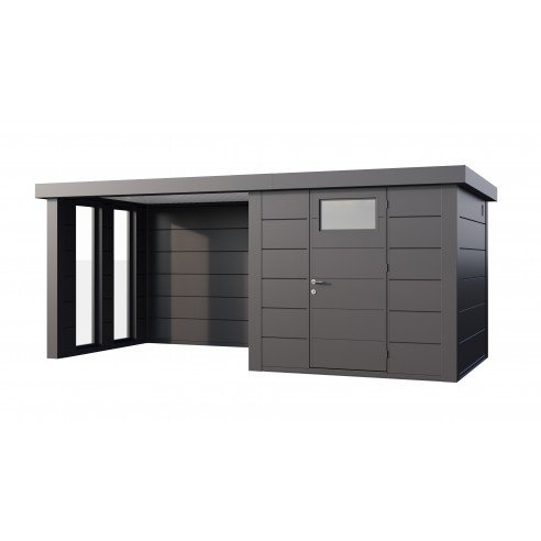 Abri de jardin Eleganto / Classico 2424 Anthracite avec Lounge small à gauche fermé + 2 fenêtres fixes